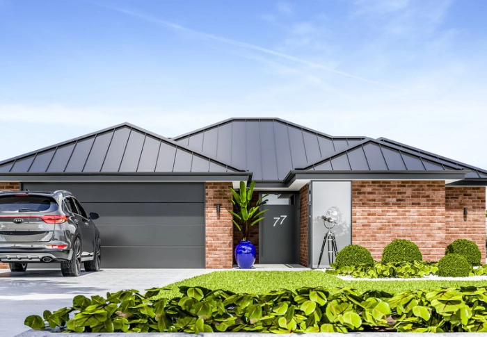 The master also enjoys a shared outdoor space. The open plan living room has the option of a pitched ceiling and this space flows out to both morning and evening outdoor living areas.