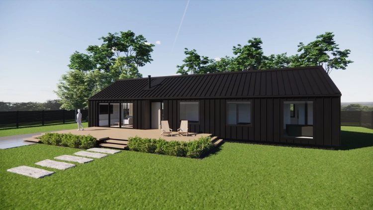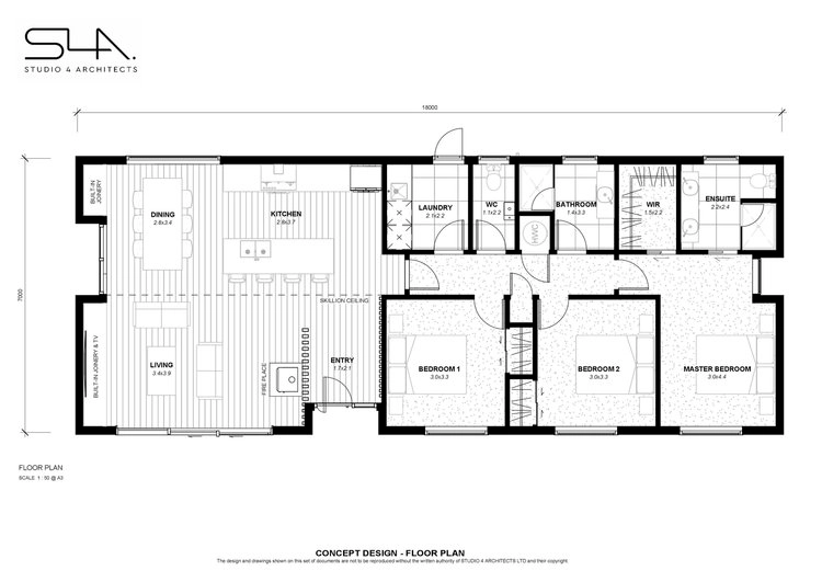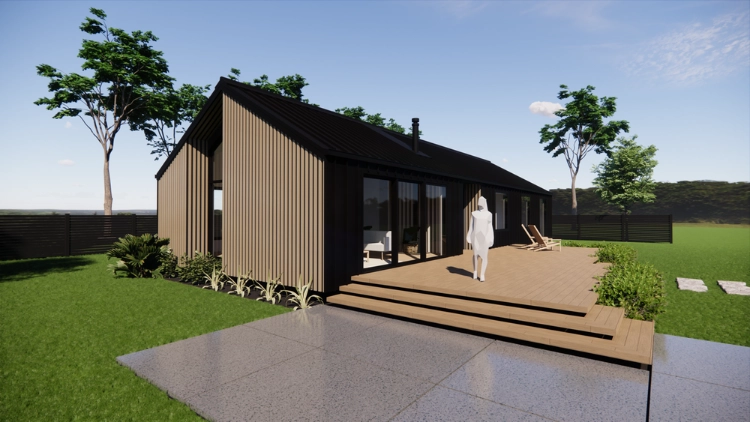 This plan has many features that set it apart the rest. From the log burner situated in front of a lovely slat screen, to the skillion ceiling in the living, dining, kitchen and the master with walk in robe and ensuite. Entertain guests from the open plan kitchen, dining and living area that can be open to the outdoors with the stacker sliding door. Floor plan/ layout can be altered to suit your lifestyle. This plan can also be reduced to a one or two bedroom home if required.